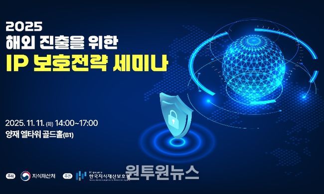 (원투원뉴스) 지식재산처는 11월 11일 14시, 엘타워(서울시 서초구)에서 ‘2025 해외진출을 위한 지식재산 보호전략 발표회’를 개최한다고 밝혔다.