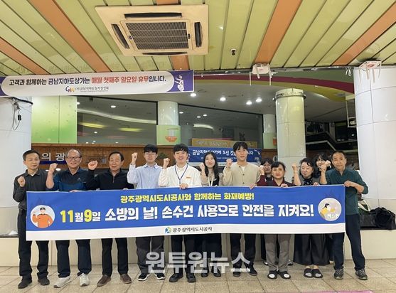 (원투원뉴스) 광주도시공사는 지난 7일 ‘소방의 날’을 맞아, 공사가 관리·운영 중인 충금 지하도상가 일원에서 화재 예방 캠페인을 실시했다.