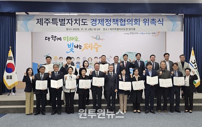 (원투원뉴스) 제주특별자치도는 11월 11일 오전 10시20분, 도청 탐라홀에서 ‘제주특별자치도 경제정책협의회 위촉식’을 개최했다.