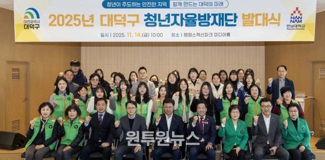 (원투원뉴스) 대전 대덕구는 14일 한남대학교 캠퍼스혁신파크에서 ‘대덕구 청년자율방재단’ 발대식을 열고 청년 중심의 지역 재난안전 활동을 본격화한다고 밝혔다.