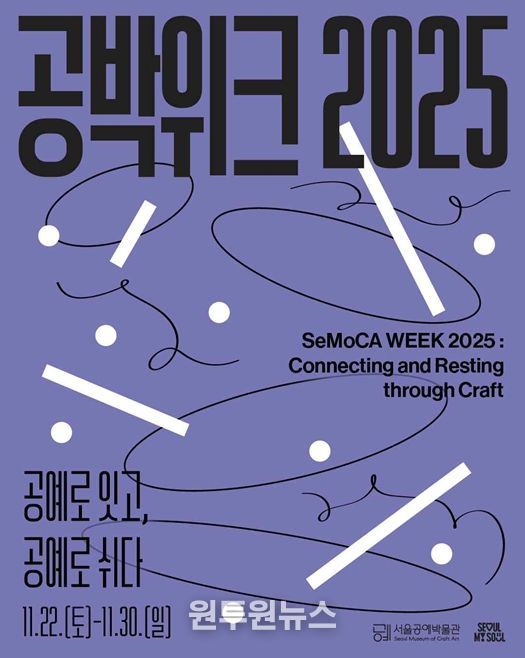 (원투원뉴스) 서울공예박물관은 11월 22일부터 30일까지, 개관 4주년을 기념해 '공박위크 2025: 공예로 잇고, 공예로 쉬다'를 개최한다. '공박위크'는 공예의 가치를 시민들과 공유하고, 일상 속에서 공예를 체험하며 힐링할 수 있는 개관 기념 주간으로 기획됐다.