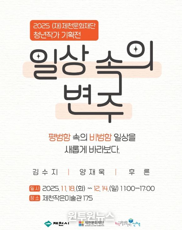 (원투원뉴스) 제천문화재단이 '2025 '청년작가 기획전''2차 전시를 12월 14일까지 전시한다.