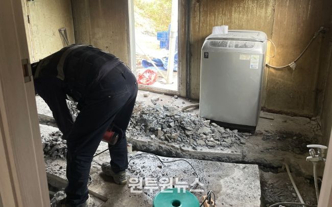 세면대조차 없던 시멘트 바닥의 욕실은 아파트 수준의 깔끔한 화장실로 변신했고, 산비탈에 위치해 위험했던 경사로에는 자갈을 깔아 안전한 진입로와 마당이 조성됐다.