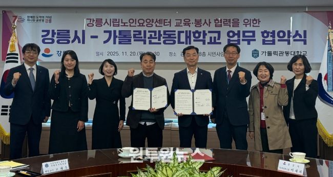 이번 협약식은 지난 11월 4일 개원한 강릉시립노인요양센터가 지역사회 속 공립 치매전담형 노인요양시설로서 본격적인 운영에 들어선 가운데, 노인 돌봄 서비스 품질 향상과 더불어 지역 대학과의 연계 협력을 통해 현장 인재 양성 기반을 확립한다는 취지로 마련됐다.