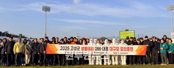 (원투원뉴스) 고성군은 군민의 생명과 안전을 지키기 위해 2025년 11월 20일 고성군종합운동장에서 ‘2025년 생물테러 대응 대규모 모의훈련’을 성공적으로 실시했다고 밝혔다.