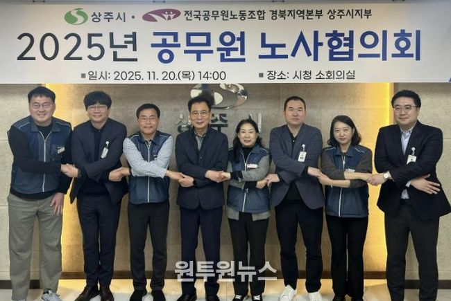 (원투원뉴스) 상주시는 11월 20일 시청 소회의실에서 공무원 노동조합과 직원 후생복지 증진과 근무 환경개선을 위한 ‘2025년도 공무원 노사협의회’를 개최했다.