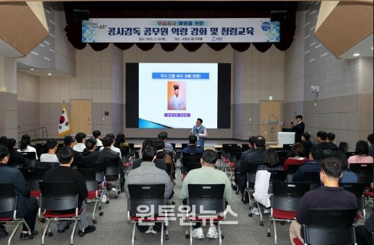 특히, 실제 현장에서 자주 발생하는 문제 사례와 개선 방향을 중심으로 교육을 진행해 공무원들이 업무에 즉시 활용할 수 있도록 실효성을 높였으며, 공사감독 과정에서 요구되는 청렴 의식과 직무 책임성을 강화 교육도 병행함으로써 공사 관리 전반의 신뢰도와 투명성 제고에 주안점을 두었다.