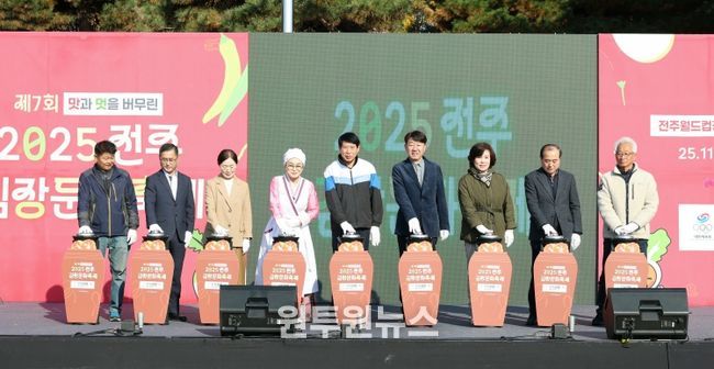 ‘맛과 멋을 버무린, 2025 전주김장문화축제’를 슬로건으로 진행되는 이번 행사는 맛과 멋의 고장 전주의 김장 문화 홍보 및 지역에서 생산된 안전한 농산물을 알리기 위해 마련된 것으로, 참여 가족에게는 전주 지역에서 생산되고 안전성을 인증받은 지역농산물을 이용해 만든 절임 배추와 양념 재료가 제공됐다.