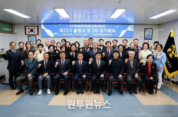(원투원뉴스) 민주평화통일자문회의 단양군협의회는 11월 21일 오전 10시 30분 단양군청 소회의실에서 단양군수, 자문위원 등 45명이 참석한 가운데 ‘제22기 출범식 및 2025년 3차 정기회의’를 개최했다.