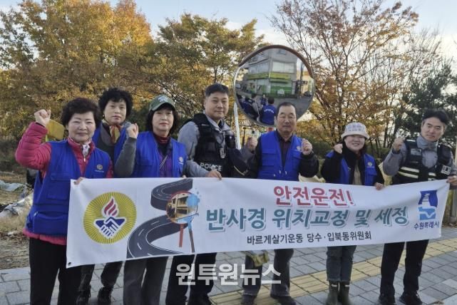 (원투원뉴스) 수원시 권선구 입북동 바르게살기운동위원회는 지난 23일, ‘안전하고 쾌적한 내 고향 지킴이’사업의 일환으로 관내에 설치되어 있는 도로 반사경의 세정작업 및 환경정비를 실시하여 안전한 교통환경 조성에 기여했다.