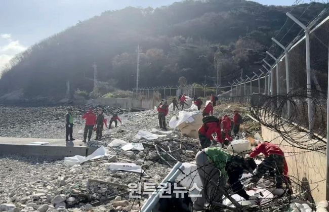 이날 정화활동에는 마을 이장 등 주민과 군장병, 대청면사무소 직원 등 50여 명이 참여했으며, 해안가에 방치된 폐어망, 로프, 스티로폼, 플라스틱류 등 약 10톤의 해양·생활폐기물을 수거했다.