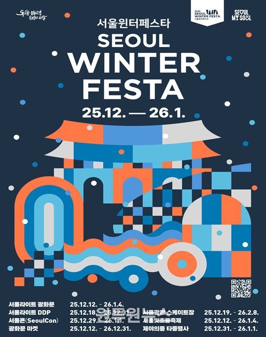 서울시는 12월 12일부터 2026년 1월 4일까지 24일간, 광화문광장~청계천~서울광장~DDP~보신각~우이천 6곳을 잇는 초대형 겨울축제 '2025 서울윈터페스타'를 개최한다고 밝혔다. 올해 행사는 궁중문화축전 및 전국무용제 등 대한민국 대표축제를 성공적으로 이끈 이재원 총감독이 지휘한다.