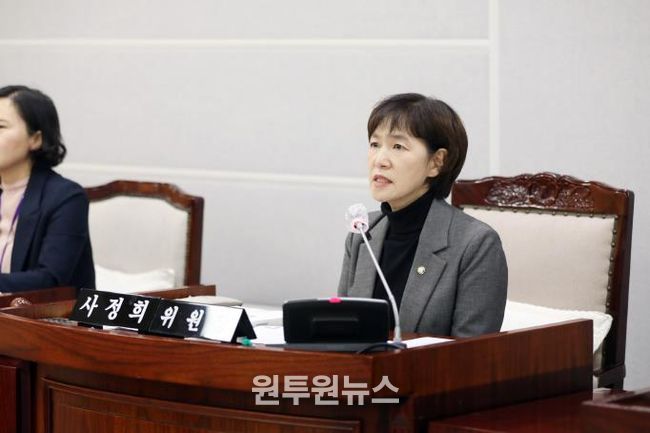 (원투원뉴스) 수원특례시의회 보건복지위원회 부위원장 사정희 의원(더불어민주당, 매탄1·2·3·4)은 21일, 제397회 제2차 정례회 영통구청 행정사무감사에서, 영통구청 관내 동행정복지센터 복지행정팀과 건강복지팀간 유기적인 협조를 강조하고, 관내 어린이공원 기능 다변화를 위한 접근 방향을 제시했다.