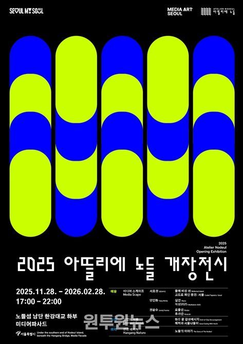 (원투원뉴스) 서울시는 한강 중심부 노들섬 남단 한강대교 하부에 공공 미디어아트 전시플랫폼 ‘아뜰리에 노들’을 11월 28일 개장하고, 2026년 2월 28일까지 매일 오후 5시부터 10시까지 운영한다고 밝혔다.