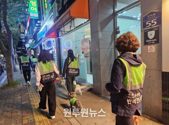 (원투원뉴스) 광주 광산구 수완동은 지난 24일 수완호수공원에서 수완동 반려견 순찰대 야간 합동 순찰을 실시했다.