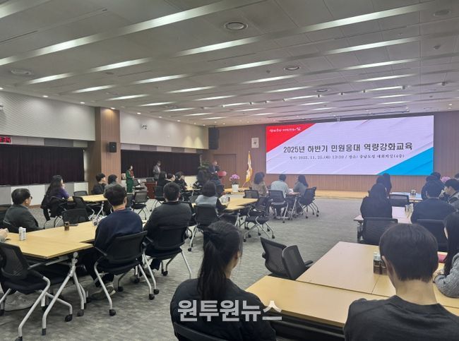(원투원뉴스) 충남도는 25일 도청 대회의실에서 민원 담당 공무원 50여 명을 대상으로, ‘하반기 민원 응대 역량 강화 교육’을 실시했다.