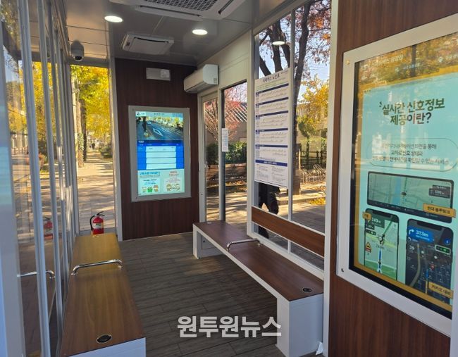 실내에 설치된 스크린에는 승강장 외부 CCTV 영상과 버스정보시스템(BIS)이 연계되어, 정류장으로 접근하는 버스의 현재 상황을 쉽게 확인하여 승차 편의와 안정성을 높였다.