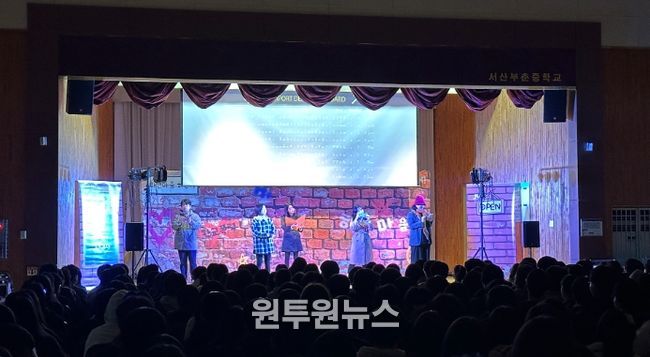 (원투원뉴스) 서산문화재단은 25일 서산 관내 중학교(서령중, 부춘중)에서 학교폭력 예방 교육 공연 ‘하얀마음 하얀이’를 개최했다.