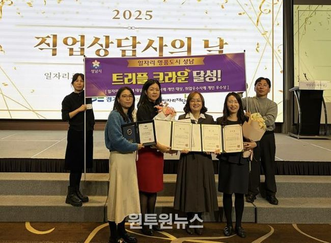 (원투원뉴스) 성남시는 경기도일자리재단이 주관한 ‘2025년 시군 일자리센터 운영 우수사례 공모전’에서 단체부문 대상, 개인부문 대상·우수상을 모두 받으며 우수한 성과를 거뒀다고 27일 밝혔다.