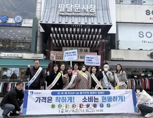 (원투원뉴스) 수원시 팔달구는 2025년 11월 26일 지동교 일원(지동시장·미나리광시장·못골시장)에서 ‘제6회 새빛세일페스타 연계 Boom-up 물가안정 릴레이 캠페인’을 실시했다.