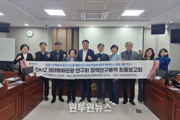(원투원뉴스) 경기도의회 의원연구단체인 DMZ생태평화관광 연구회(회장 오준환 의원)는 지난 27일 경기도의회 도시환경위원회 회의실에서 '커먼즈 관점에서 본 DMZ와 배후지의 지속가능한 협력 거버넌스 모델 개발 연구' 용역 최종보고회를 개최했다.