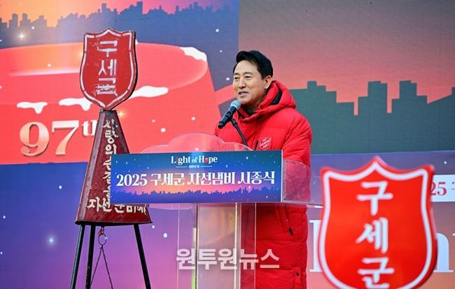 (원투원뉴스) 오세훈 서울시장은 28일 오전 10시 30분 광화문광장 놀이마당에서 진행된 ‘2025 구세군 자선냄비 시종식’에 참석해 모금 시작을 알리고 성금을 기부했다.