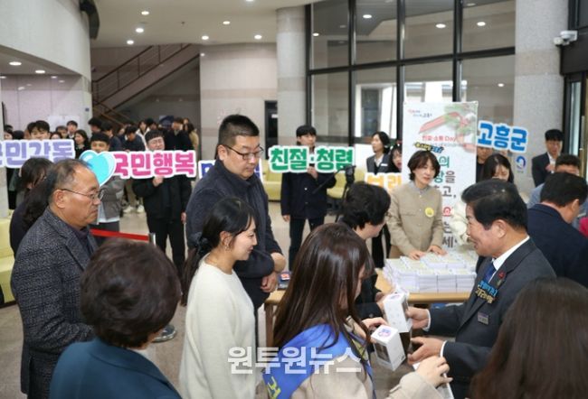 (원투원뉴스) 고흥군은 직원 소통의 날을 맞아 지난 1일 고흥문화회관 김연수실 입구에서 전 직원을 대상으로 ‘친절 소통 데이’를 운영했다고 밝혔다.