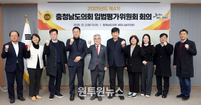 (원투원뉴스) 충남도의회는 2일 의회 세미나실에서 ‘2025년도 제4차 충청남도의회 입법평가위원회 회의’를 열고, 입법평가 연구용역 최종 보고와 함께 향후 조례 개선 방향, '지방의회법' 등 자치분권 법제 개선 방향 등을 공유했다.