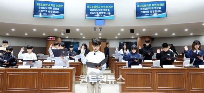(원투원뉴스) 충남도의회는 2일 홍성 내포초등학교 학생 20명과 지도교사 1명이 참여한 가운데 ‘청소년 의회교실’을 개최했다.