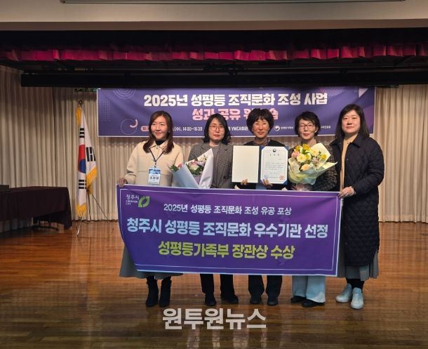 (원투원뉴스) 청주시는 3일 성평등가족부가 주관한 ‘2025년 성평등 조직문화 조성’ 성과평가에서 우수기관으로 선정돼 성평등가족부 장관 표창을 수상했다.