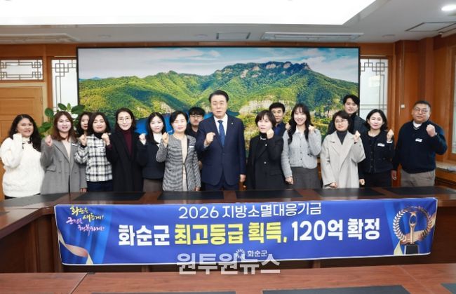 (원투원뉴스) 화순군은 2026년 지방소멸대응기금 투자계획 평가에서 ‘우수지역’으로 선정되어 최대 금액인 120억 원을 확보했다고 3일 밝혔다.