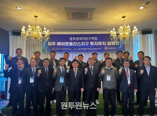 (원투원뉴스) 충북경제자유구역청은 12월 3일 제이원호텔에서 대한항공, 한국공항공사 청주지사 등 항공·방위산업 분야 주요 기관 및 기업 관계자가 참석한 가운데 ‘청주 에어로폴리스지구 투자유치 설명회’를 개최했다고 밝혔다.