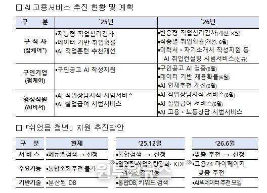 국가일자리정보플랫폼에 기반한 맞춤형 고용서비스도 대폭 확대해 나갈 방침이다. ’26년에는 구직자 대상 이력서·자기소개서에 대한 인공지능(AI) 취업컨설팅, 구인기업 대상 채용 확률에 기반한 맞춤 구인 컨설팅을 신규 개발·제공한다.