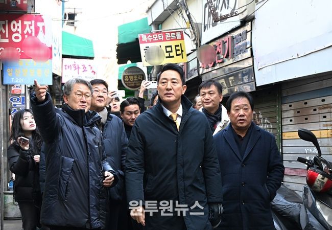 (원투원뉴스) 오세훈 서울시장이 4일 노후 건축물이 밀집한 세운지구를 찾아 장기간 정체된 정비사업으로 인한 주민 불편과 요구사항을 청취했다. 세운 재개발은 서울시가 민간 참여 유도를 통해 도심에 대규모 녹지를 확보하기 위한 ‘녹지생태도심 재창조 전략’과도 직접 맞닿아 있다.