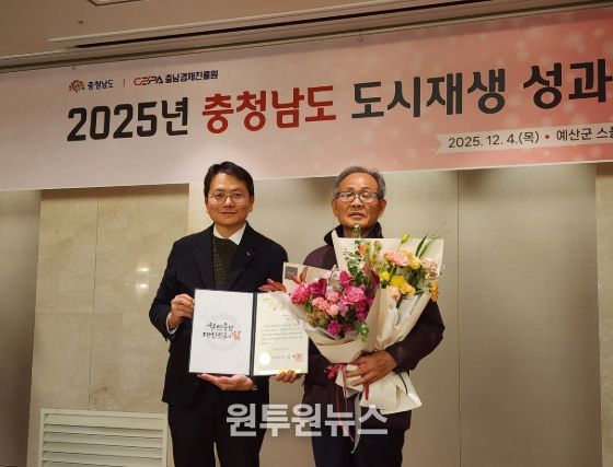 (원투원뉴스) 홍성군은 지난 4일 열린 ‘2025년 충남 도시재생 성과공유회’에서 광천읍 원촌마을 이두영 이장이 도시재생 업무 추진 유공으로 충청남도지사 표창을 수상했다고 밝혔다.
