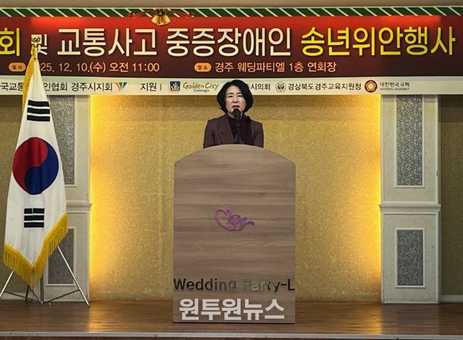 (원투원뉴스) (사)한국교통장애인협회 경주시지회는 지난 10일 오전 11시 경주 웨딩파티엘에서 ‘제27회 정기총회 및 교통사고 중증장애인 송년위안행사’를 개최했다.