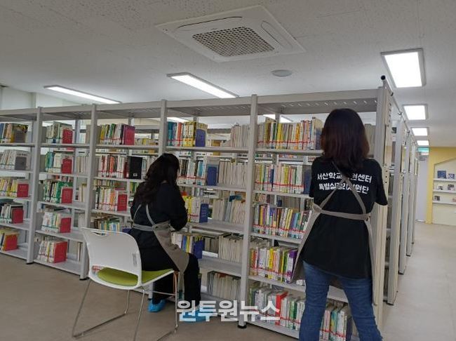 (원투원뉴스) 충청남도서산교육지원청 학교지원센터는 지난 11일, 서산부춘중학교를 방문하여 도서실 정리 지원 활동을 실시했다.
