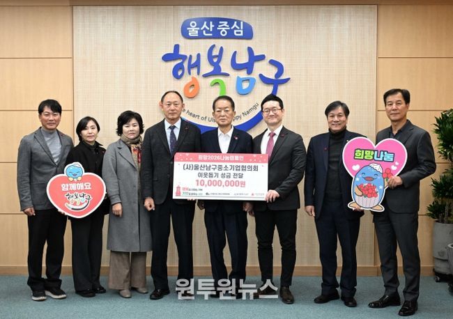 서동욱 남구청장은 “꾸준한 나눔을 실천해주시는 (사)울산남구중소기업협의회에 감사드린다”며 “기탁해 주신 성금이 자립을 준비하는 청년들에게 따뜻한 도움으로 잘 전달되도록 최선을 다하겠다”고 전했다.