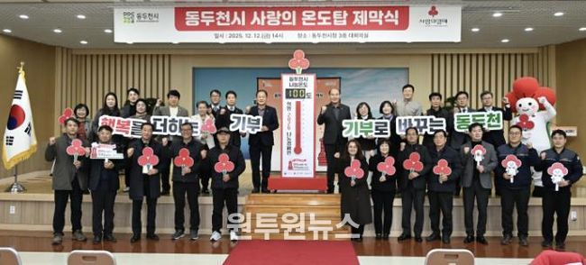 (원투원뉴스) 동두천시는 지난 12월 12일 동두천시청 대회의실에서 동두천시장을 비롯해 동두천시의회 의장 및 의원, 경기북부 사회복지공동모금회 관계자, 기업·단체·시민 등 40여 명이 참석한 가운데 ‘사랑의 온도탑’ 제막식을 개최했다.