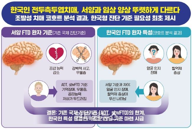 연구진은 서양에서 제안한 두 가지 우측 측두엽형 전두측두엽치매 진단 기준(네덜란드의 Amsterdam 진단 트리(ADT), 미국 UCSF의 sbvFTD 기준)의 국내 적용 가능성을 검증했다.