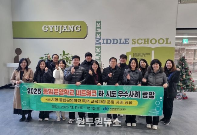 (원투원뉴스) 제주특별자치도교육청은 11일부터 12일 도내 초‧중 통합운영학교 운영 경험이 있는 업무 담당자 및 교육청 관계자 등 총 13명과 함께 경기도 수원과 시흥 지역의 도시형 통합운영학교를 방문해 우수사례 탐방을 실시했다.