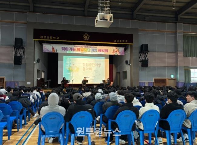 (원투원뉴스) 경상북도영주교육지원청 Wee센터는 12월 17일 대영고등학교, 영주여자중학교, 영주제일고등학교를 대상으로 '찾아가는 학업중단예방 음악회'를 운영했다.