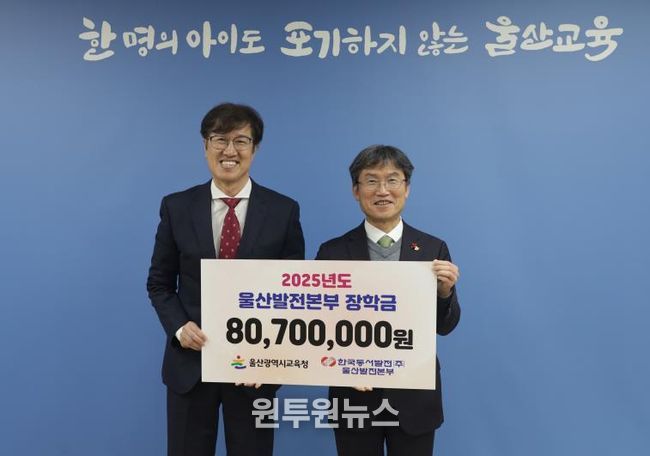 (원투원뉴스) 울산광역시교육청은 한국동서발전(주) 울산발전본부에서 장학금 8,070만 원을 전달받았다.
