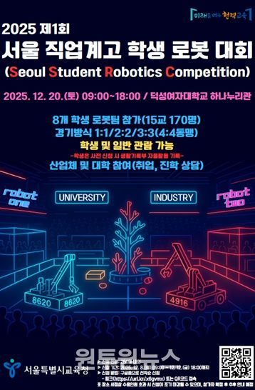(원투원뉴스) 서울특별시교육청은 2025년 12월 20일(토) 덕성여자대학교 하나누리관에서 '2025 제1회 서울 직업계고 학생 로봇대회(SSRC)'를 개최한다.