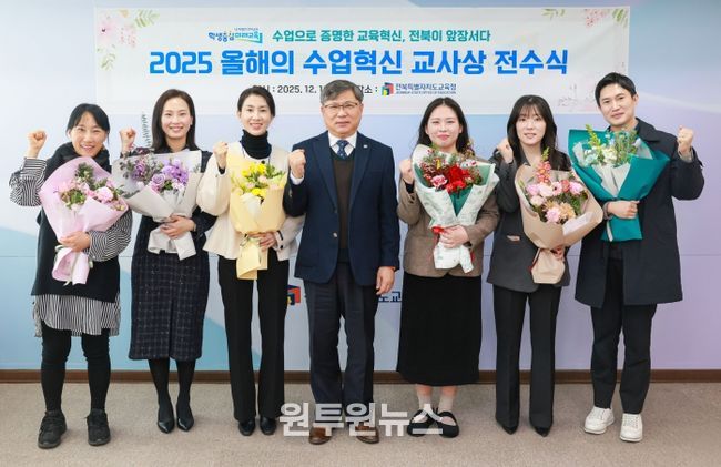 전북특별자치도교육청은 교육부가 주최한 ‘2025. 올해의 수업 혁신 교사상’에서 도내 초등교사 3명, 중등교사 4명이 수상의 영예를 안았다고 18일 밝혔다.