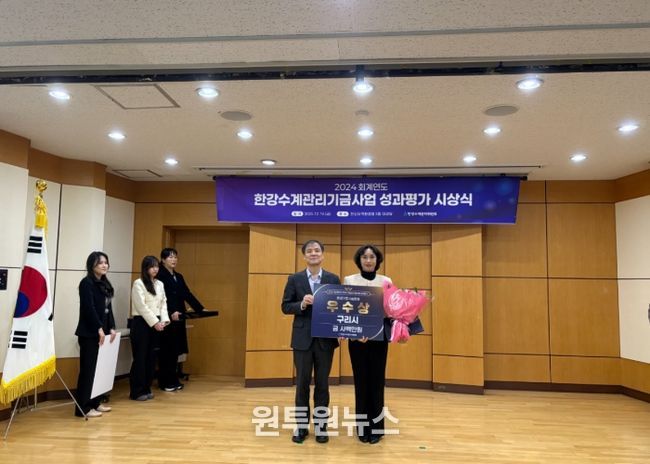 (원투원뉴스) 구리시가 한강유역환경청 주관 ‘한강수계관리기금 사업 성과 평가’에서 환경기초시설 운영 분야 우수기관으로 선정되어, 지난 19일 우수상을 받았다.