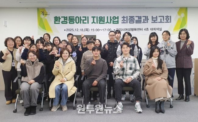 (원투원뉴스) 구리시는 지난 12월 18일 시 지원사업으로 추진한 '기후 위기 시대 안전한 환경가치를 지키고 지속 가능한 성장을 위한 탐구활동 프로젝트'의 일환으로, 초·중·고 학생 8개 환경동아리가 참여한 탐구활동 최종 보고회를 개최했다.