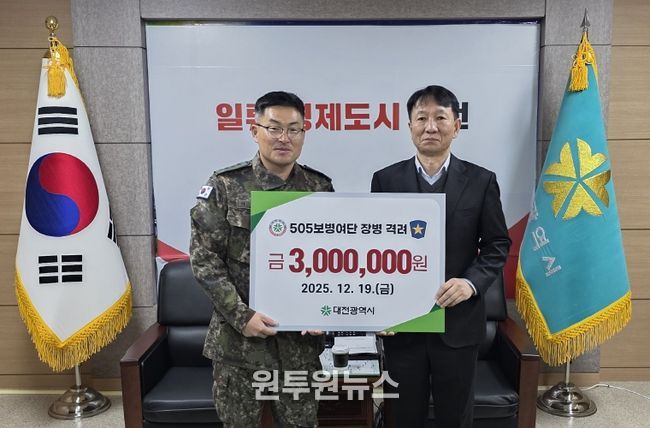 (원투원뉴스) 대전시는 19일 오전, 제1970부대에 ‘25년 비상대비훈련을 성공적으로 마친 국군 장병의 노고를 격려하고 국가안보 헌신에 감사의 뜻을 담아 위문금을 전달했다.
