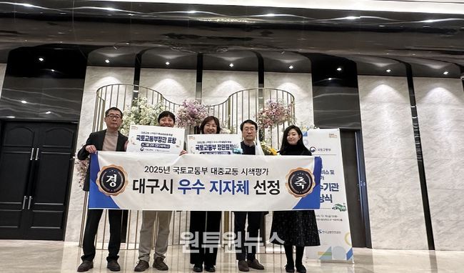 (원투원뉴스) 대구광역시는 12월 19일, 서울 그랜드힐컨벤션에서 열린 ‘2025년도 대중교통 시책평가 시상식’에서 우수 지자체로 선정돼 국토교통부 기관 및 개인 표창을 수상했다.