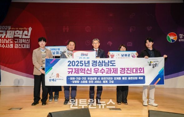 (원투원뉴스) 경상남도는 19일 도청 본관 4층 대회의실에서 ‘2025 경상남도 규제혁신 우수사례 경진대회’를 개최했다. 이번 경진대회는 규제혁신을 통해 도민이 체감할 수 있는 변화를 이끌어낸 우수사례를 공유하고, 향후 추진 방향을 모색하기 위해 마련됐다.